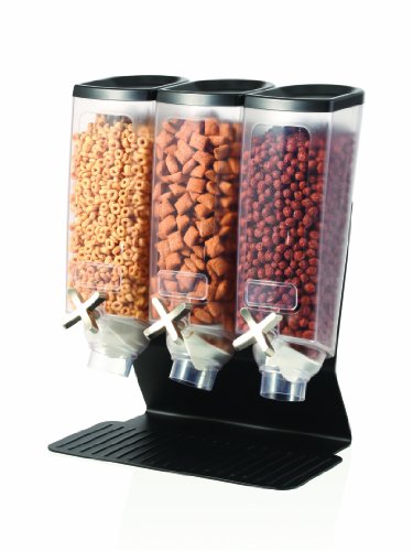 Keep your cereal and snack items fresh with this EZ PRO H3B dispenser from Rosetto. This elegant dispenser is slender and sturdy, taking up minimal counter space. It is perfect for salad toppings, ice cream toppings, snacks, candy, anything you would like to dispense in controlled portions. Great for controlling snacking and for weight conscious eating. Each of the three compartments holds one gallon of dry food and the sealed compartment helps keep the food fresh longer.